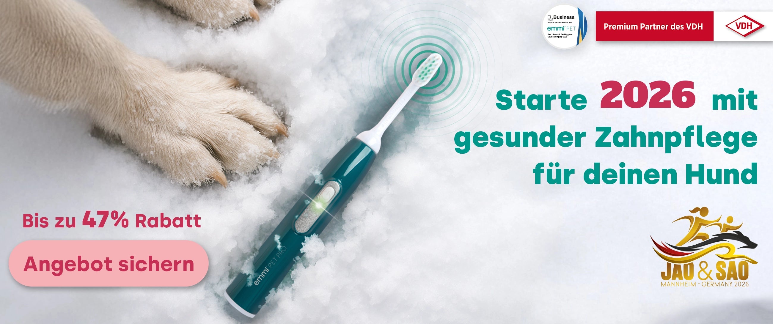 Der richtige Hundebedarf spielt eine entscheidende Rolle für das Wohlbefinden deines treuen Begleiters. Bei emmi-pet finden Tierliebhaber ein umfangreiches Angebot an hochwertigem Hundezubehör, das speziell darauf ausgerichtet ist, die Gesundheit und das Wohlbefinden deines Hundes zu fördern. Mit unserer innovativen emmi-pet Ultraschallzahnbürste, kannst du die Zahnpflege deines Hundes auf eine stressfreie Weise gestalten – ganz ohne Schrubben und Geräusche!