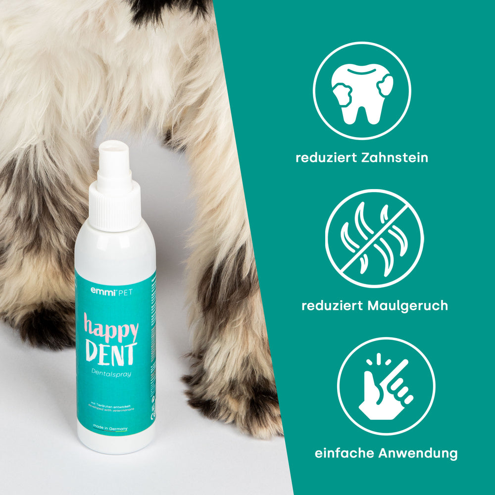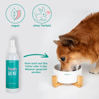 Mit dem Dentalspray entfällt das lästige Zähneputzen! Einfach morgens und abends über das Futter deines Haustieres sprühen oder direkt auf Zähne und Zahnfleisch auftragen. Die speziell von Tierärzten entwickelte Naturformel erledigt den Rest... und das in nur 10 Sekunden pro Tag!