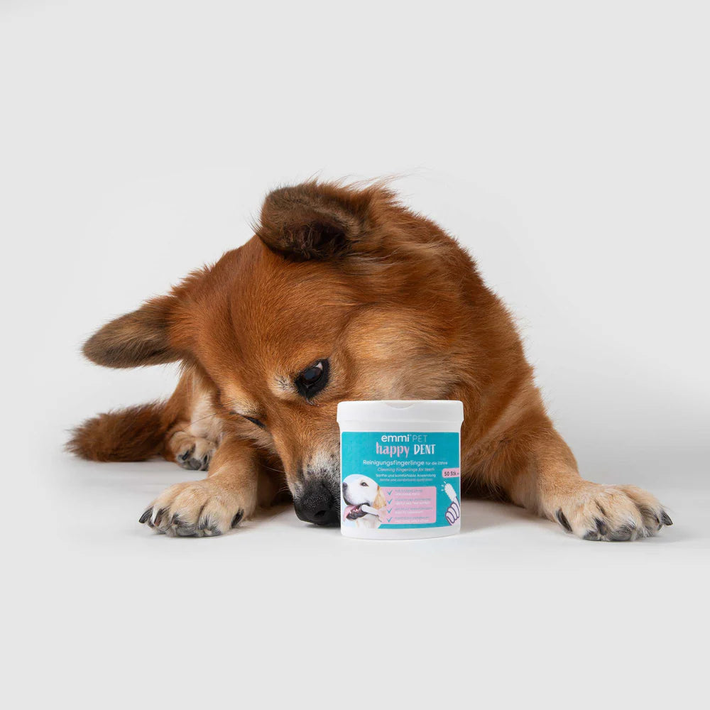 Investiere in die Zahngesundheit Deines Haustieres und bestelle noch heute unsere emmi-pet Reinigungsfingerlinge für Hunde oder Katzen!