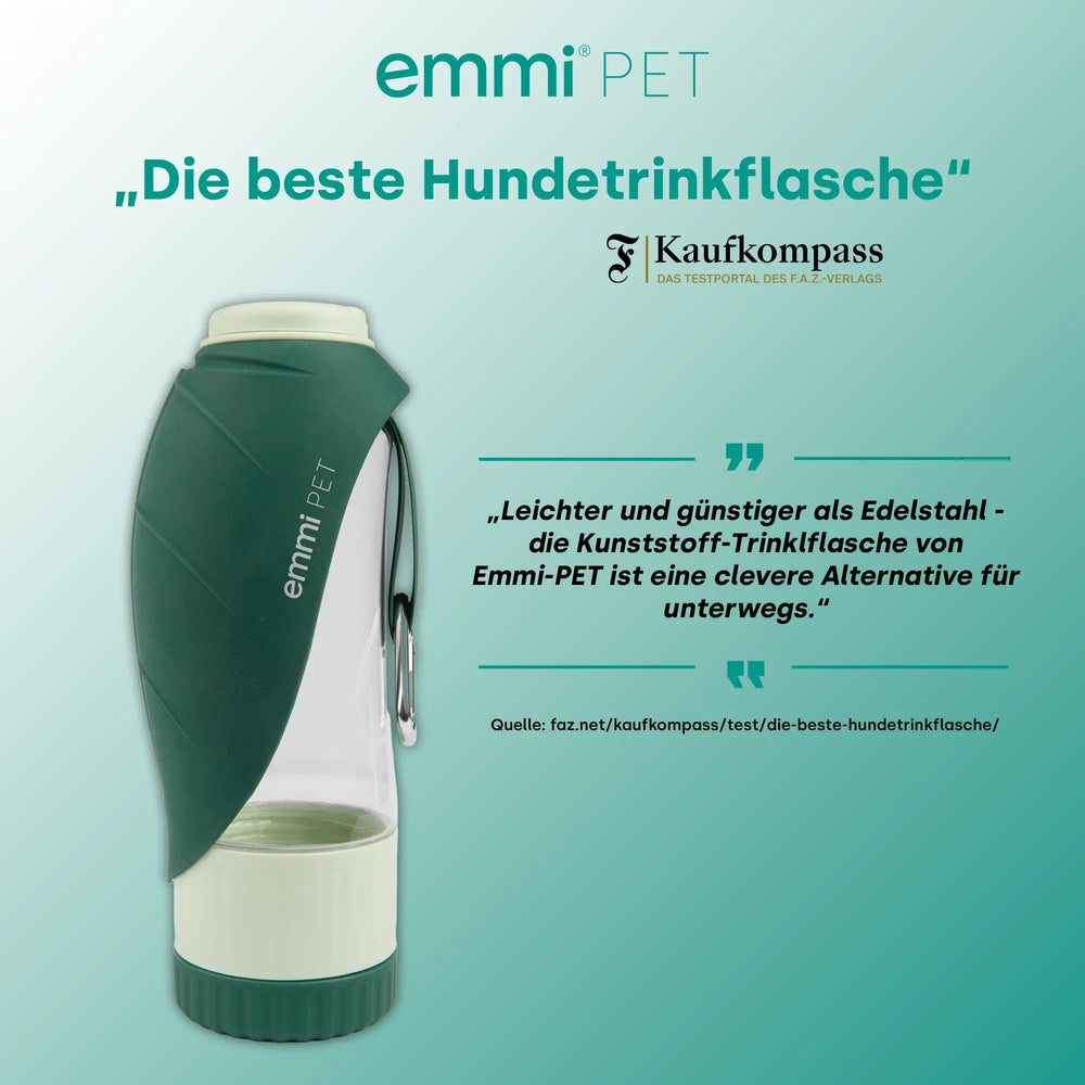 Du möchtest nur Wasser mitnehmen? Dann schau dir unsere emmi-pet Hundetrinkflasche 580ml an.