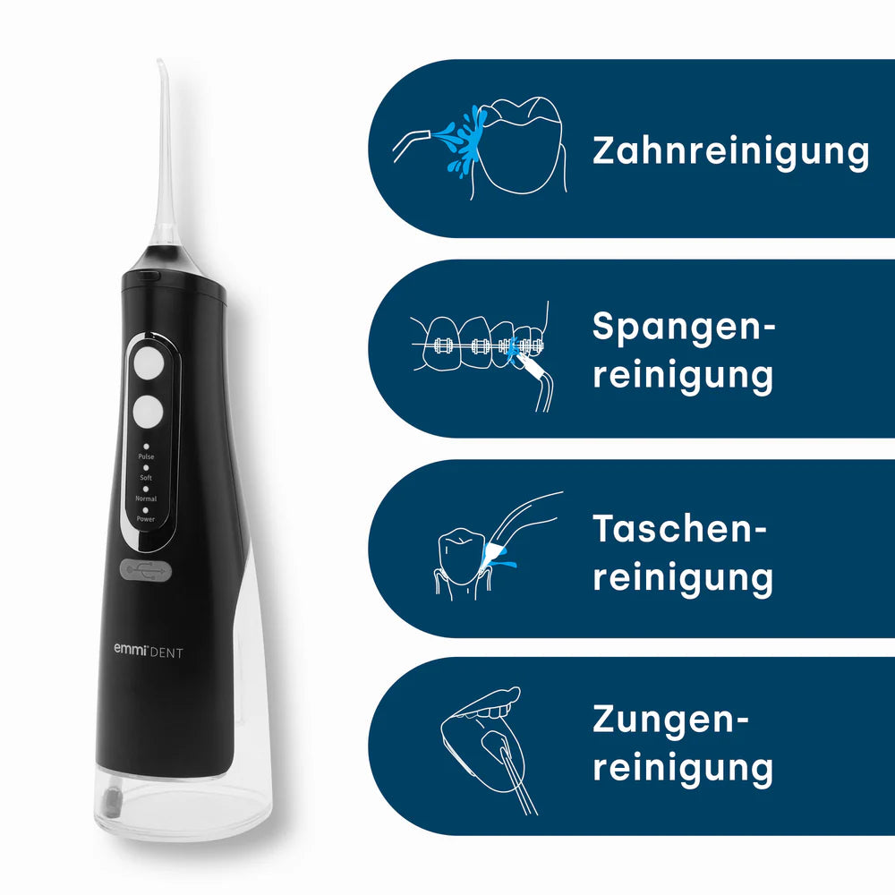Die emmi-dent Munddusche ist äußerst vielseitig und bietet eine breite Palette von Anwendungsbereichen, um eine umfassende Mundhygiene zu unterstützen: