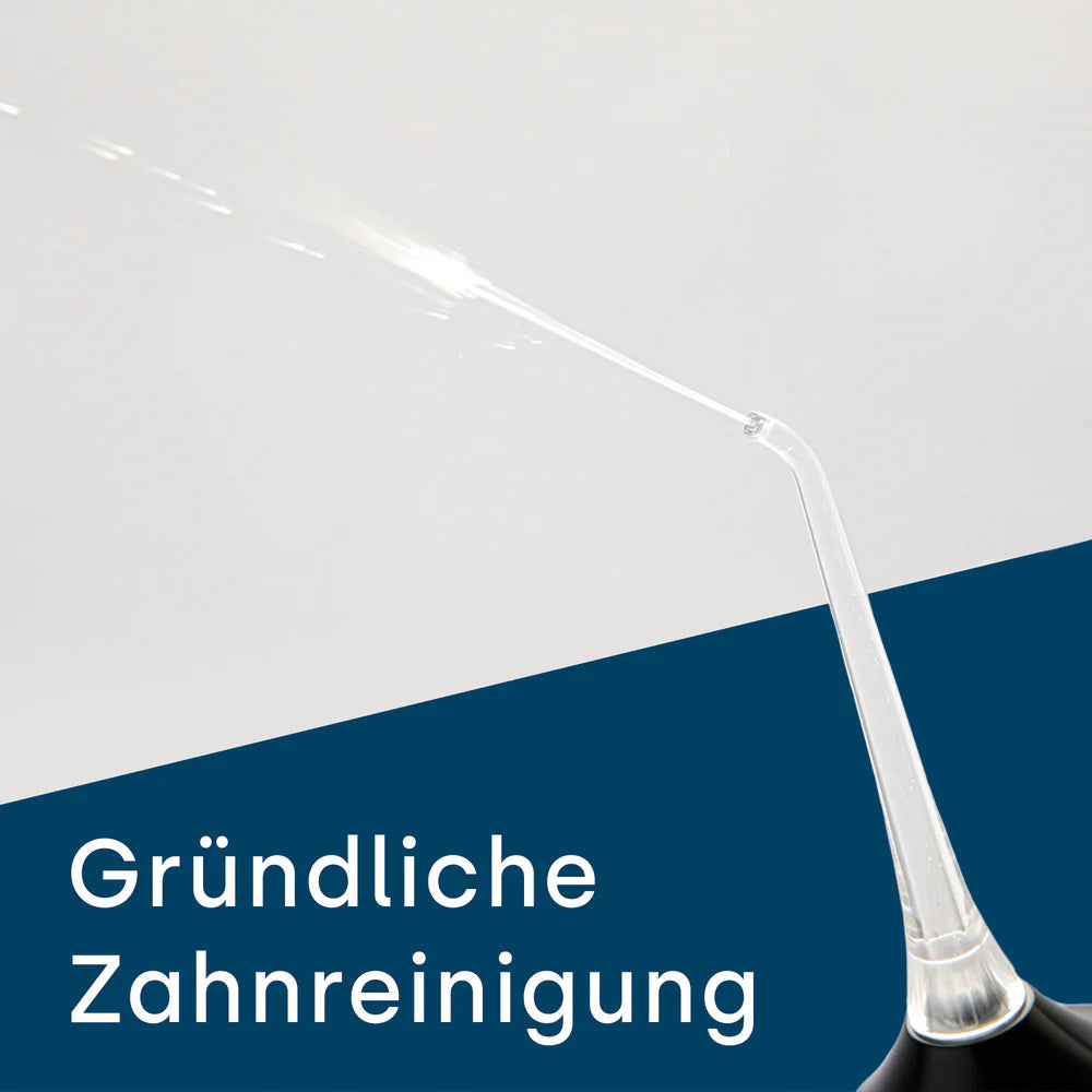 Durch den sanften Wasserstrahl massiert die Munddusche das Zahnfleisch angenehm, was die Durchblutung fördert und zur Zahnfleischgesundheit beiträgt.