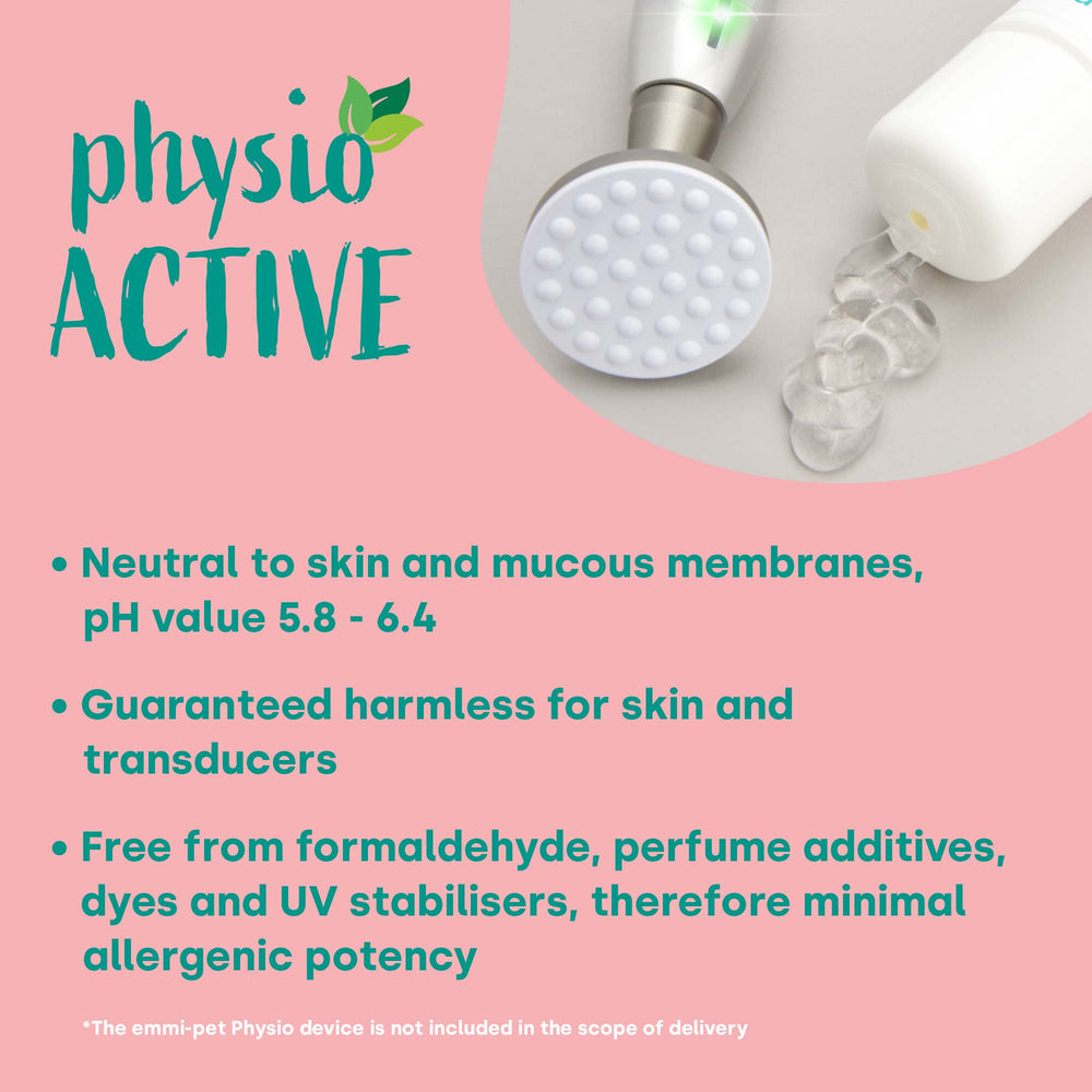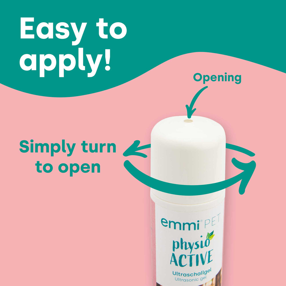 The specially developed emmi-pet Physio Active ultrasound gel ensures that the ultrasound waves can penetrate deep into the tissue. It is: