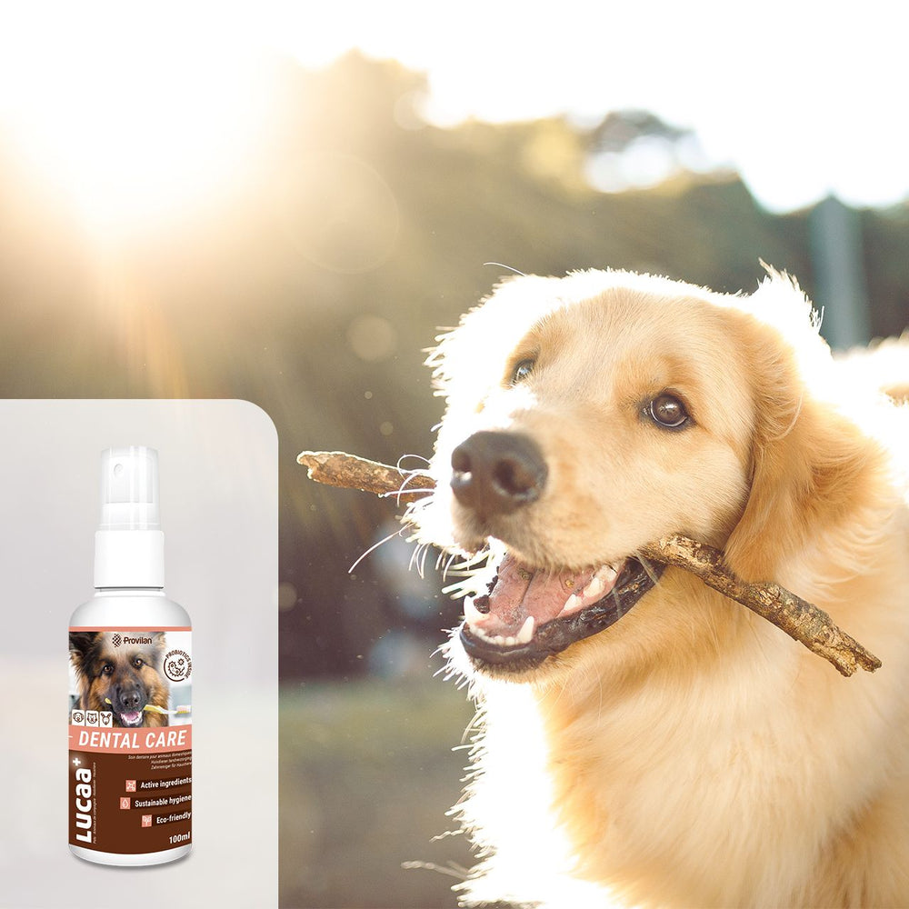 LUCAA+ Organic Tooth Cleaner is an ecological solution for quick and easy dental care for pets. LUCAA+ organic tooth cleaner creates a balanced microflora of teeth and gums. The helpful microorganisms ensure deep microscopic cleaning. With the fine taste of chicken and in the practical spray form, developed for even the most difficult pets.