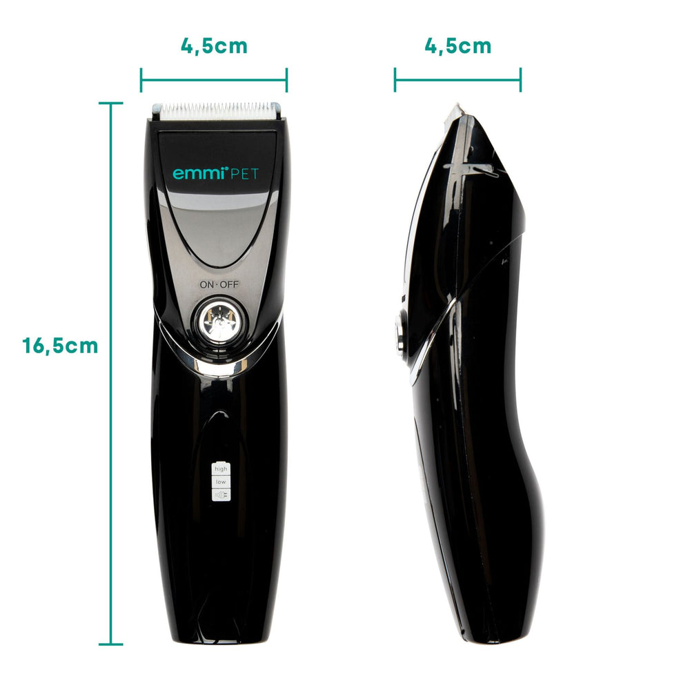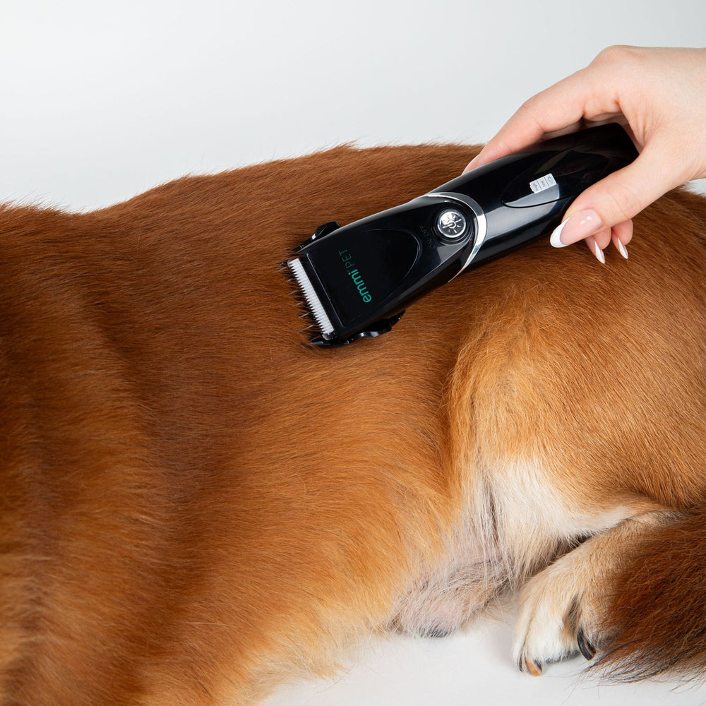 Pre-cepillado, corte y arreglo personal, así de fácil es utilizar nuestra cortadora. Antes de cortar el pelo, cepille bien el pelaje de su mascota para eliminar nudos y enredos. Esto hace que el corte sea más fácil y garantiza un resultado uniforme. A continuación, pase la cortadora lentamente y de manera uniforme sobre el pelaje. La cortadora de pelo dispone de peines de 3/6 mm y 9/12 mm, que permiten un ajuste preciso y un trabajo fino dependiendo de la longitud de corte deseada. Después de la esquila, utilice un champú suave para cuidar el pelaje y evitar la irritación de la piel.