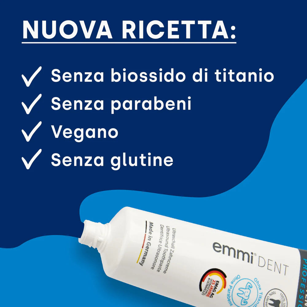Non aspettare oltre: dai vita al tuo sorriso radioso! Ordina il emmi-dent Acquista subito il dentifricio sbiancante ad ultrasuoni e sperimenta una nuova dimensione della cura dei denti.