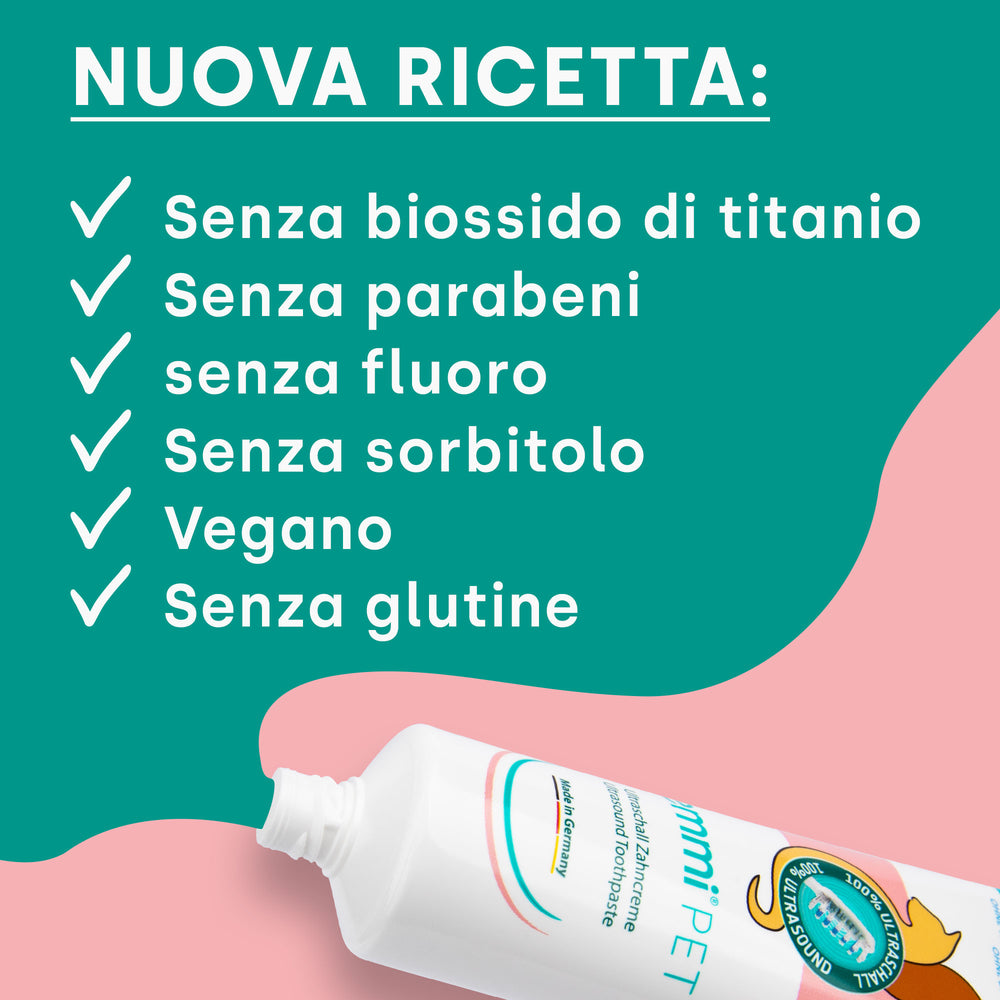 Il dentifricio ultrasonico Emmi-pet è stato sviluppato per garantire i massimi standard di cura dei denti in combinazione con lo spazzolino ultrasonico Emmi-pet. L'applicazione di ultrasuoni originali al 100% crea un effetto di pulizia unico, ottenuto attraverso la formazione di milioni di microbolle. Queste microbolle penetrano in profondità negli spazi interdentali e nelle fessure più piccole per rimuovere efficacemente biofilm, contaminanti e batteri.
