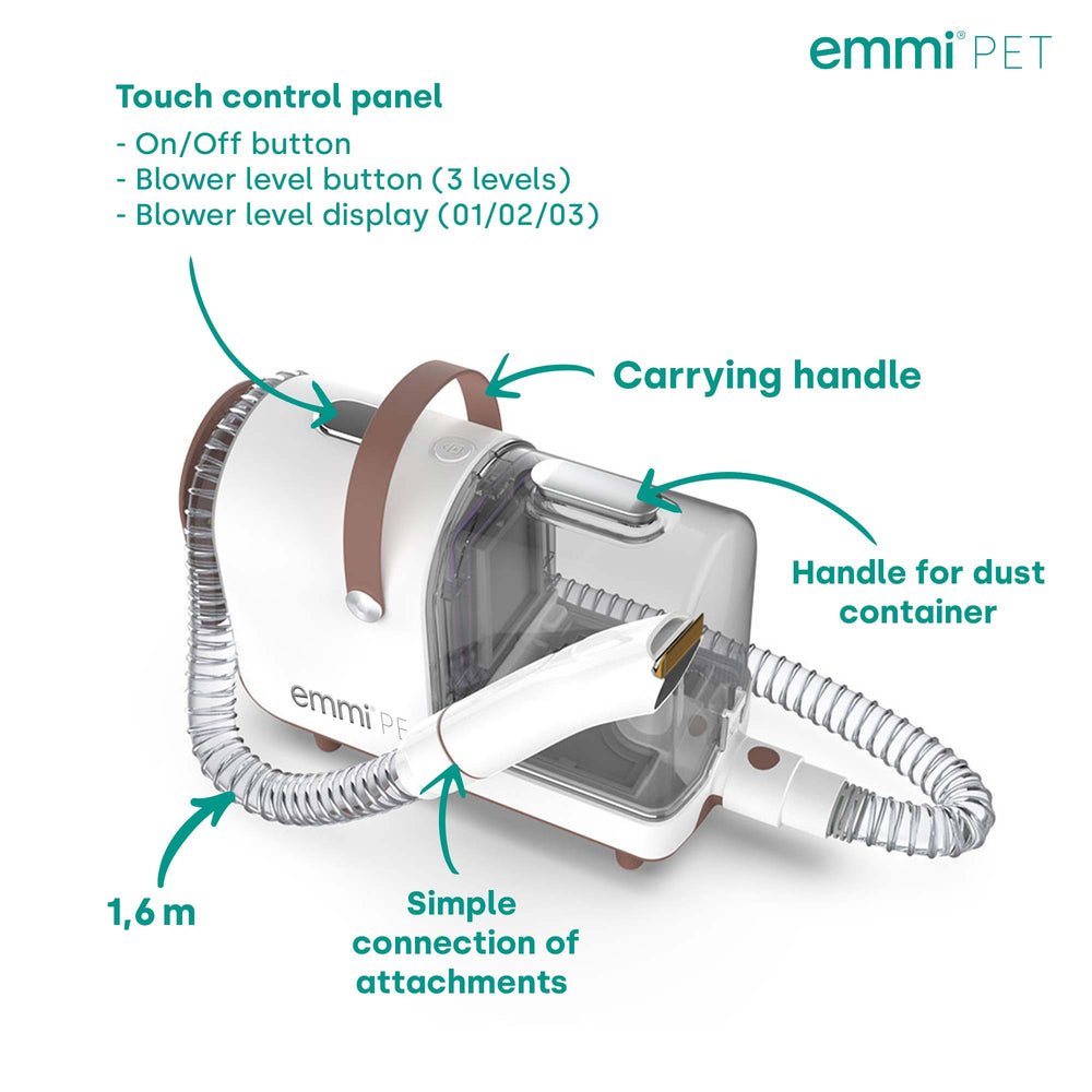 Dispositivo tutto in uno: Emmi-animale domestico Grooming Kit Home combina tagliacapelli, pettine e aspirapolvere in un unico dispositivo. Grazie al suo design esclusivo, puoi tagliare e aspirare i peli contemporaneamente, così non dovrai più preoccuparti dei peli che svolazzano. In questo modo prendersi cura del proprio animale domestico diventa semplice ed efficiente.