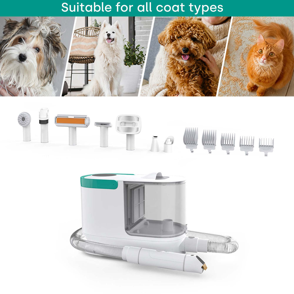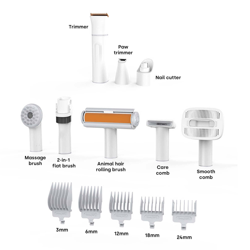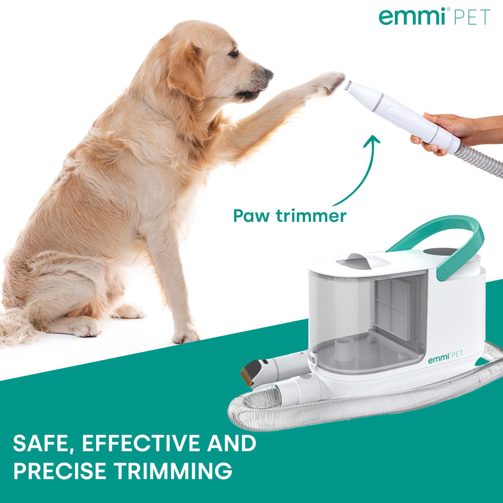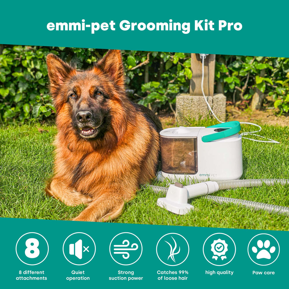 Le kit de toilettage comprend non seulement un aspirateur, mais également une tondeuse pour toiletter efficacement votre chien ou votre chat à la maison. Cela fait du kit de toilettage emmi-pet le meilleur aspirateur à poils d'animaux avec tondeuse par rapport aux autres modèles. Pour ceux qui ont besoin de soins encore plus complets, la version Pro propose également un coupe-ongles et une tondeuse à pattes spéciaux, idéaux pour un soin précis des pattes et des ongles.